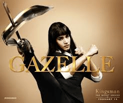 Gazelle gets killed by Eggsy, Roxy’s partner in the end of the movie. Eggsy uses one of Gazelle’s legs to “spear” the master mind Richard Valentine.