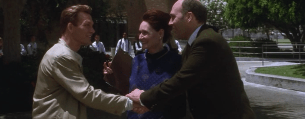 Kitty Farmer, introduces Jim Cunningham to the Principal. But is it the first time the Principal has met Cunningham? Well the handshake seems to tell another story.