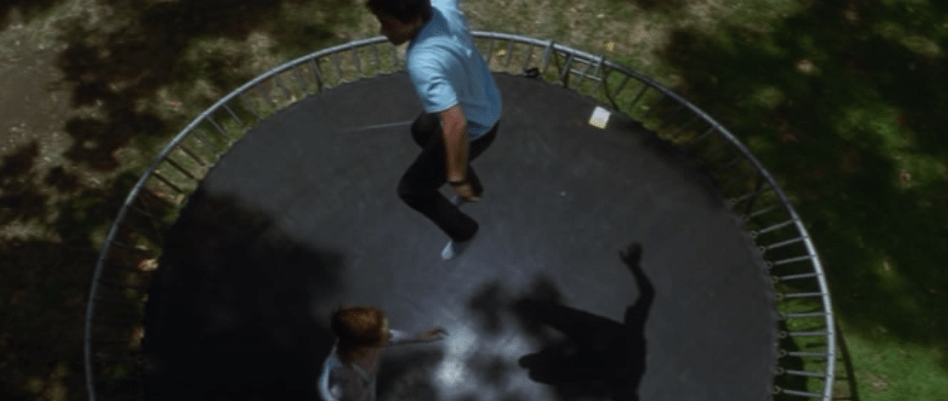 Donnie jumps on the trampoline with his sister.
