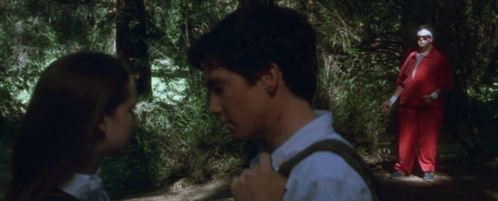 While there the “bullies” show up meaning to rob the place. They are surprised to find Donnie and Gretchen. They accost them and drag them outside. They throw them to the ground.