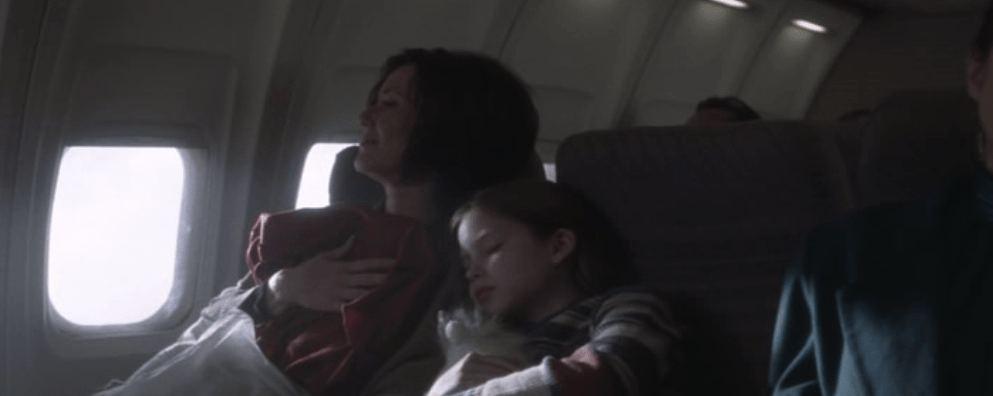 His mom and sister are on the plane that loses the engine.