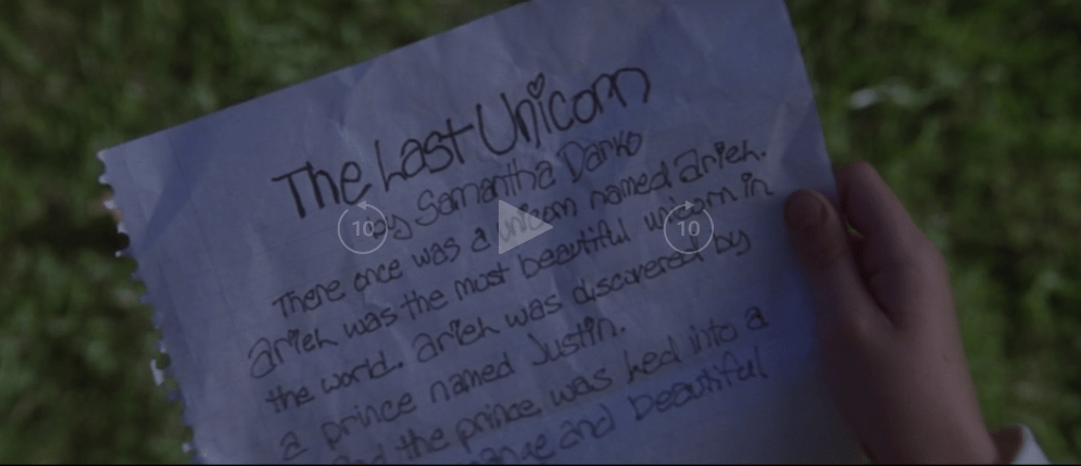 His mom calls while boarding the plane with his little sister Sam, holding the last unicorn.