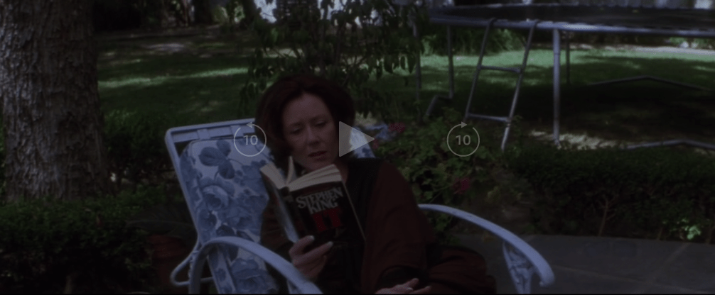 His mom Rose, is reading Stephen King’s IT, about a scary clown that appears out of nowhere. So they want us to associate Donnie’s rabbit with this evil clown.