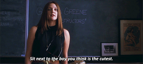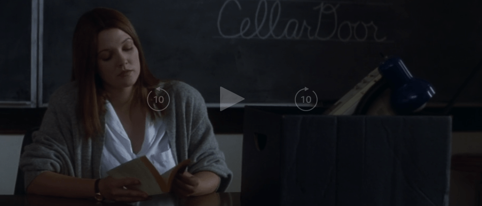 Written on the chalkboard is Cellar Door. Donnie asks why and she replies that it is the most beautiful phrase in the English language.