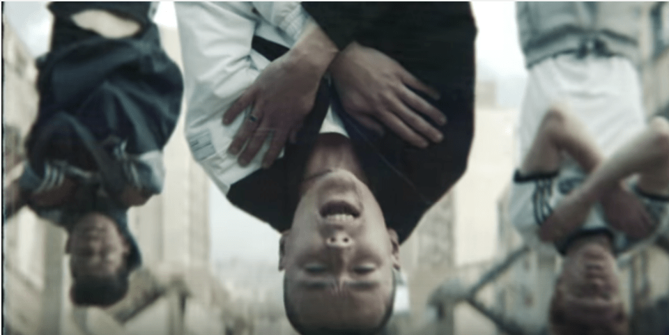 upside down, in defiance…