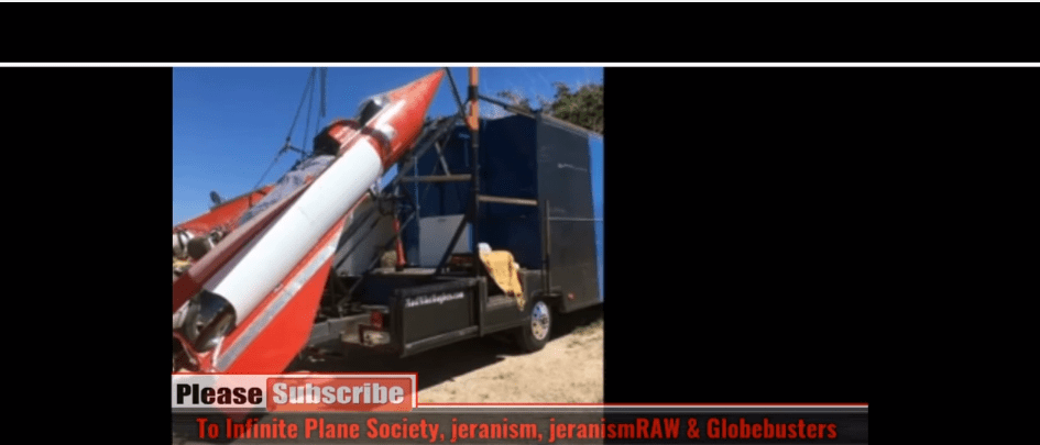 Now notice how the KFC rocket is positioned just like Mad Mike Hughes rocket. A flying dildo in space? He is being sponsored by IPS, Jeranism and Globebusters. It just amazes me people CAN see that the KFC rocket and satellite launch is a farce, that NASA rocket launches are a farce, but CAN’T see that this rocket is a farce too? Rocket man. Ha ha. About as silly as man in a rocket. Tell me, where is this guy going to sit? With his face in the wind like on a roller coaster ride? And where does that parachute deploy from?